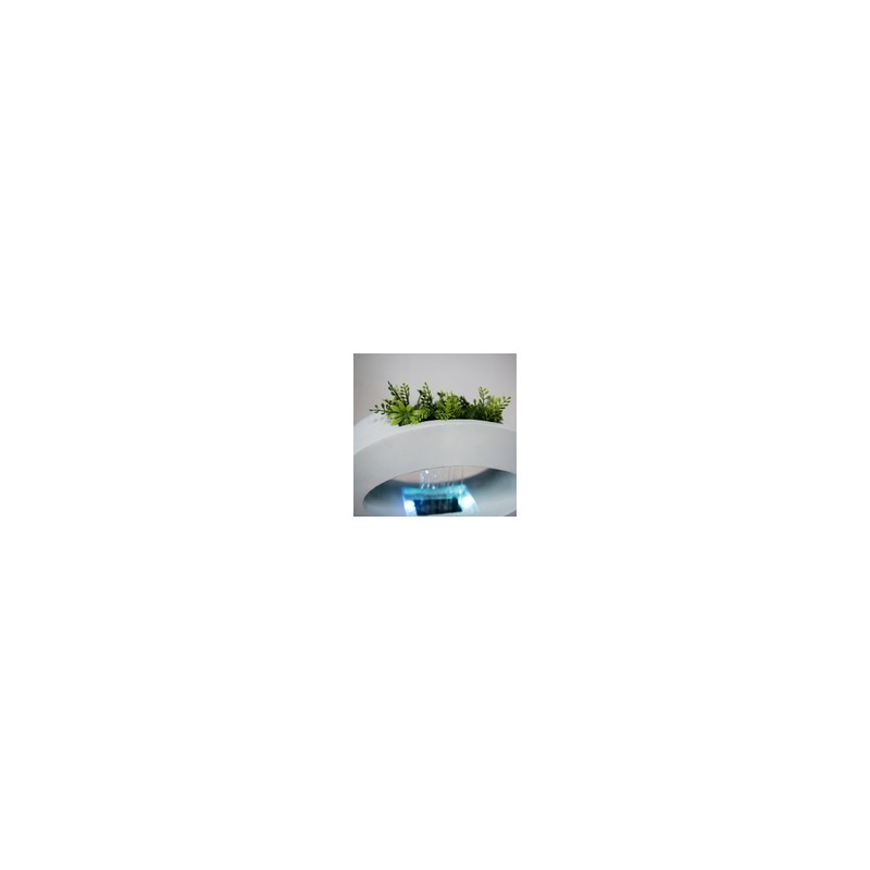 Fontaine moderne et originale avec sa forme. Elle peut accueillir une plante pour ajouter une touche de couleur. Un éclairage led vient mettre en valeur l'écoulement de l'eau.