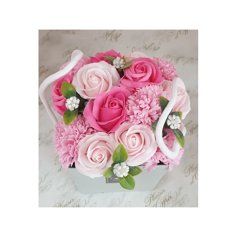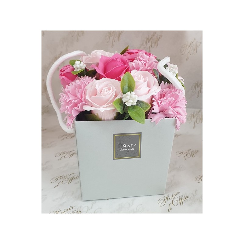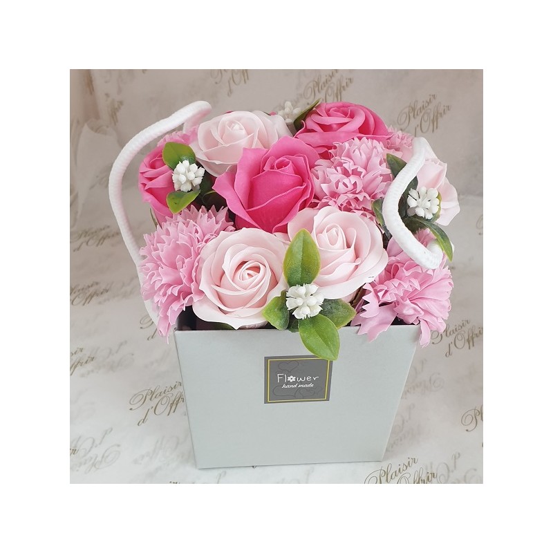 Bouquet de fleurs de savons roses et oeillets roses